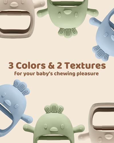 ⭐ 3 Packs Baby Teething Toy Silicone Teething Mitten for Babies Over 3 Months Anti Dropping Wrist Hand Teethers Baby Chew Toys for Sucking Needs, BPA Free (Olive, Caramel & Blue)