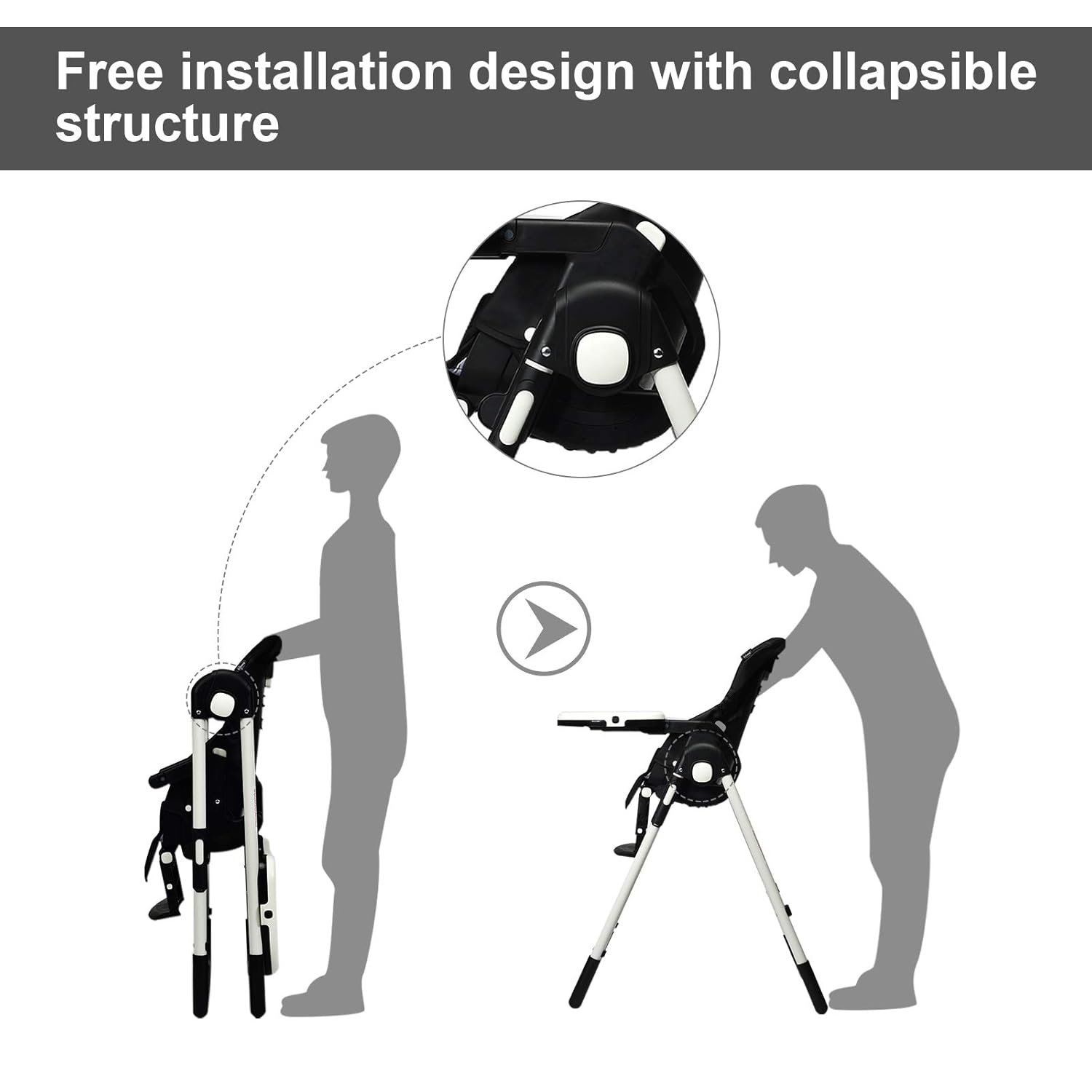 - Space-Saving Compact Fold: This compact foldable baby chair collapses in just 5 seconds and stands on its own for hassle-free storage in any kitchen corner or pantry. Built-in rear wheels add extra portability, making this an excellent portable highchair for trips or grandparent visits.