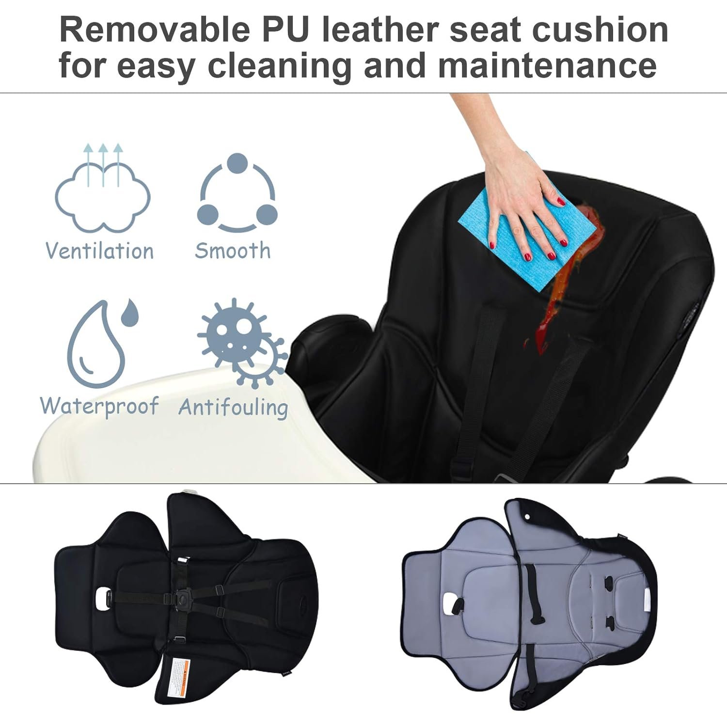 - Effortless Maintenance: The removable tray is BPA-free, lightweight, and a true dishwasher safe tray—no hand scrubbing required. Plus, the removable PU leather cushion simply wipes clean, making this an easy to clean high chair worth considering.