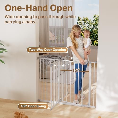 Gates for Doorways & Hallways, Safety Gate for Kids & Pets, Pressure-Mounted Walk-Through with Dual Lock & 2-Way Swing, White