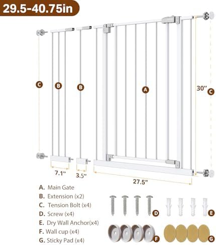The InnoTruth extra-wide safety gate spans doorways and hallways from ~28.9″ to 42.1″ and stands about 30″ tall, offering a wide walk-through door and dual-lock security. Its heavy metal frame supports both children and pets, and its pressure- or hardware-mounted design makes installation flexible for various homes. Upgrade your child or pet safety setup today with a gate that balances strength, convenience and versatility.
