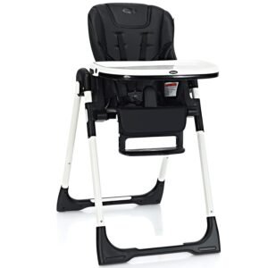 The Baby Trend Sit-Right High Chair by Baby Trend offers reliable comfort and safety with 6 adjustable heights, a 3-point harness, and a compact, foldable steel frame—making mealtime easier and safer for your growing child.