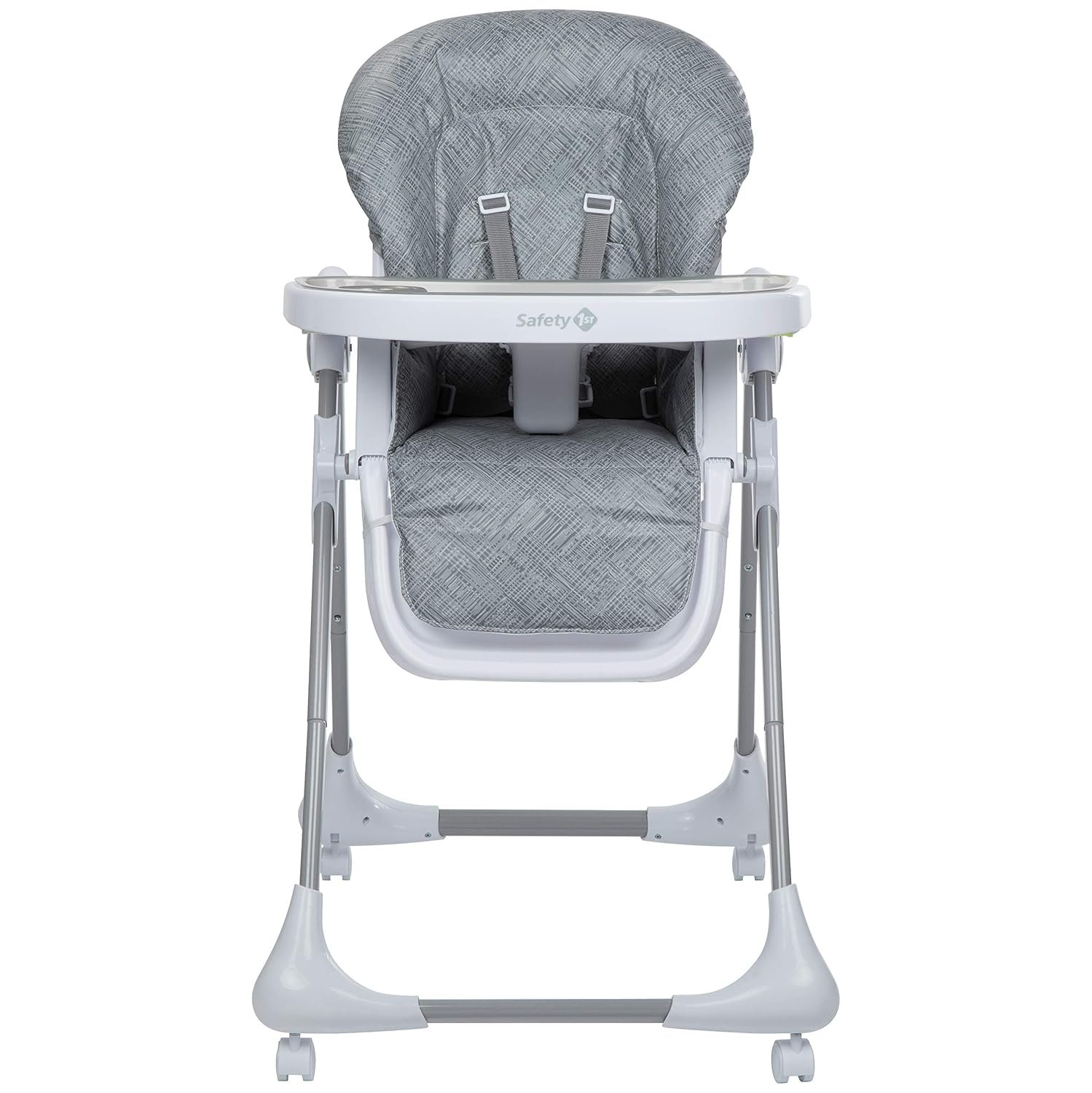 A: This high chair features a secure 5-point harness, slip-resistant feet, and meets ASTM safety standards. According to Safety 1st’s official site, it’s JPMA certified and designed for children from birth up to 35 lbs.