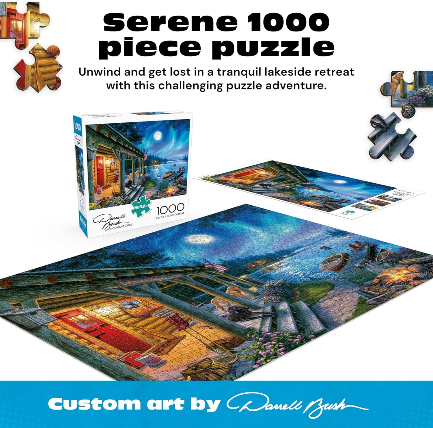 - Darrell Bush and Moonlight Lodge Art Fans: Collectors of his nature and cabin puzzle themes will want this centerpiece for their collection.