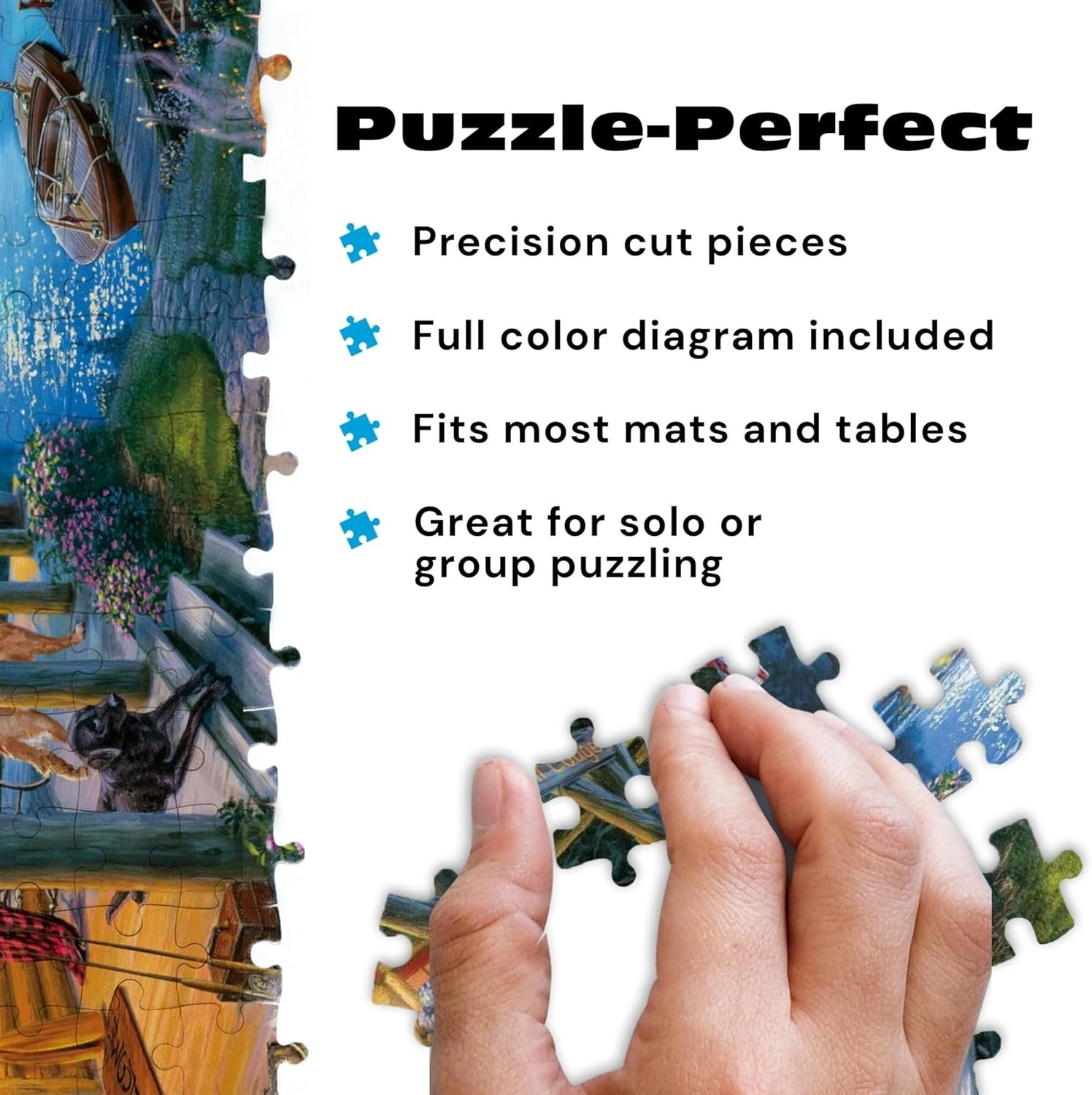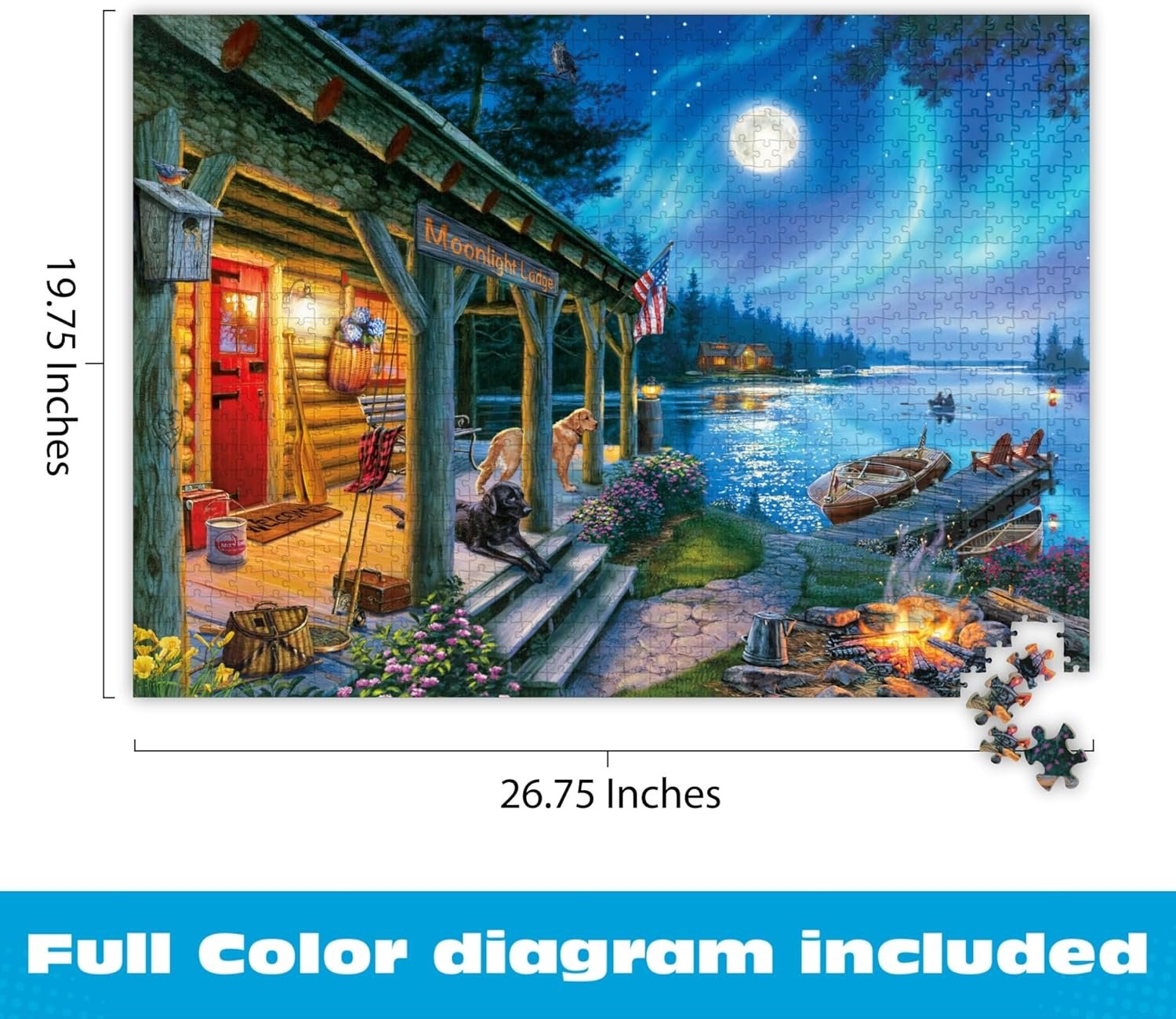 - 1000 Piece Challenge: With 1,000 precisely cut pieces (final size: 26.75″ x 19.75″), this lake cabin scene rewards focus in a way simple puzzles can’t. The included poster lets everyone—novice or expert—enjoy assembly at their own pace.