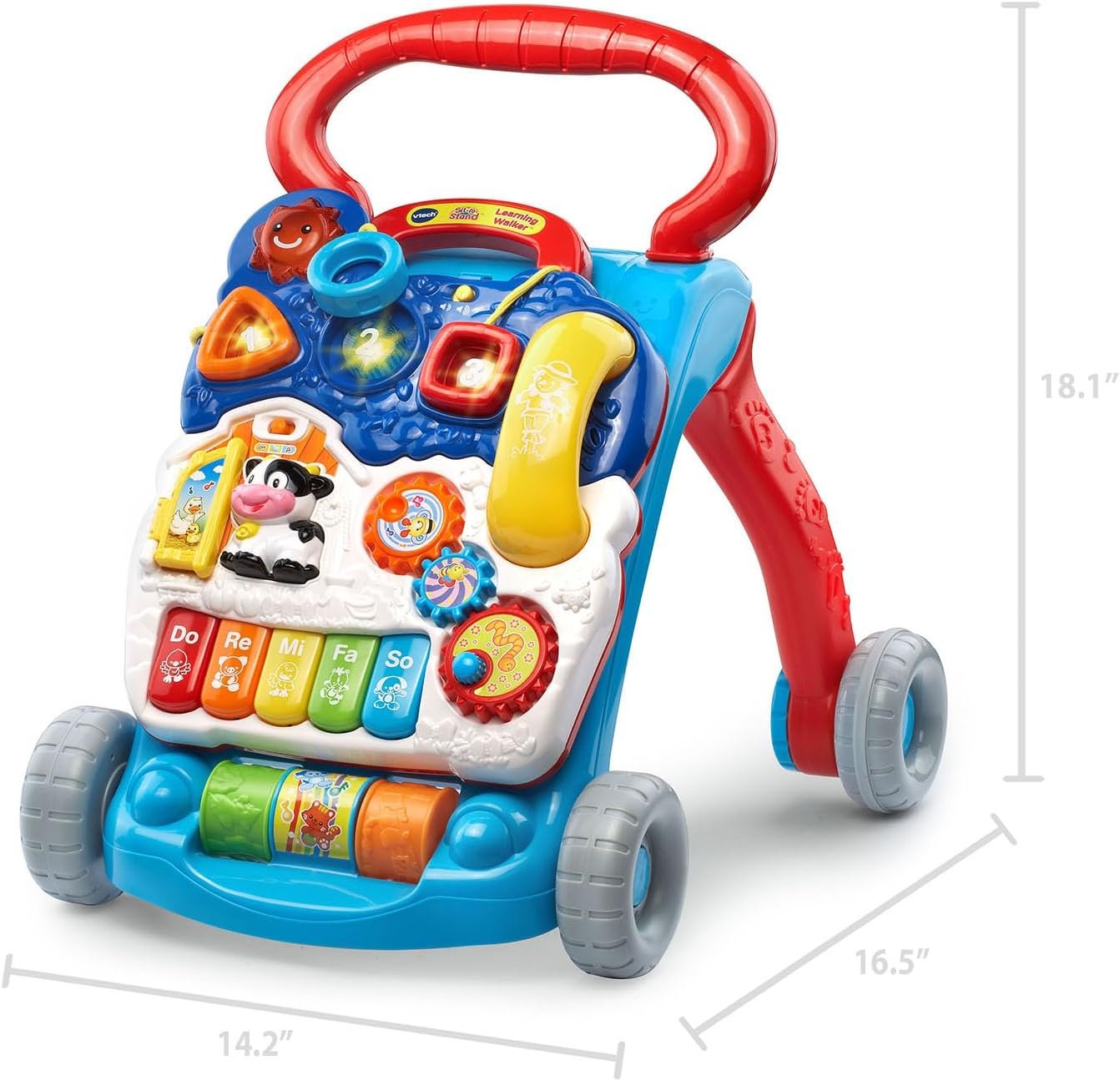 - VTech Sit-to-Stand Learning Walker: $35 (typical), includes removable activity panel, piano keys, two speed control, shape sorters, and light up buttons. One-year warranty.