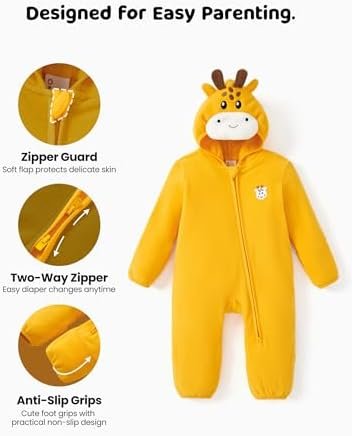 Warm, functional, and irresistibly cute, this fleece romper is designed to keep babies comfortable while helping parents manage daily routines with ease. With features such as a two-way zipper, adjustable foot covers, a soft hood, and a car-seat-friendly shape, it stands out as a valuable addition to any infant’s wardrobe. Whether used for sleep, outings, or daily comfort, it remains a reliable and charming essential.ial that keeps babies comfortable and parents stress-free.
