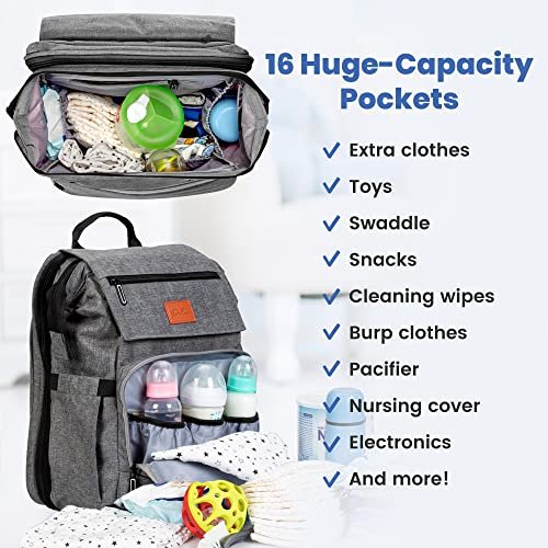 Top 1 Ultimate PILLANI Baby Diaper Bag Backpack - Large Bag for Boys & Girls, Waterproof Diaper Backpack - Travel Diaper Bags w/Changing Pad, Baby Registry Search & Shower Gifts - Essentials Must Haves Newborn Stuff