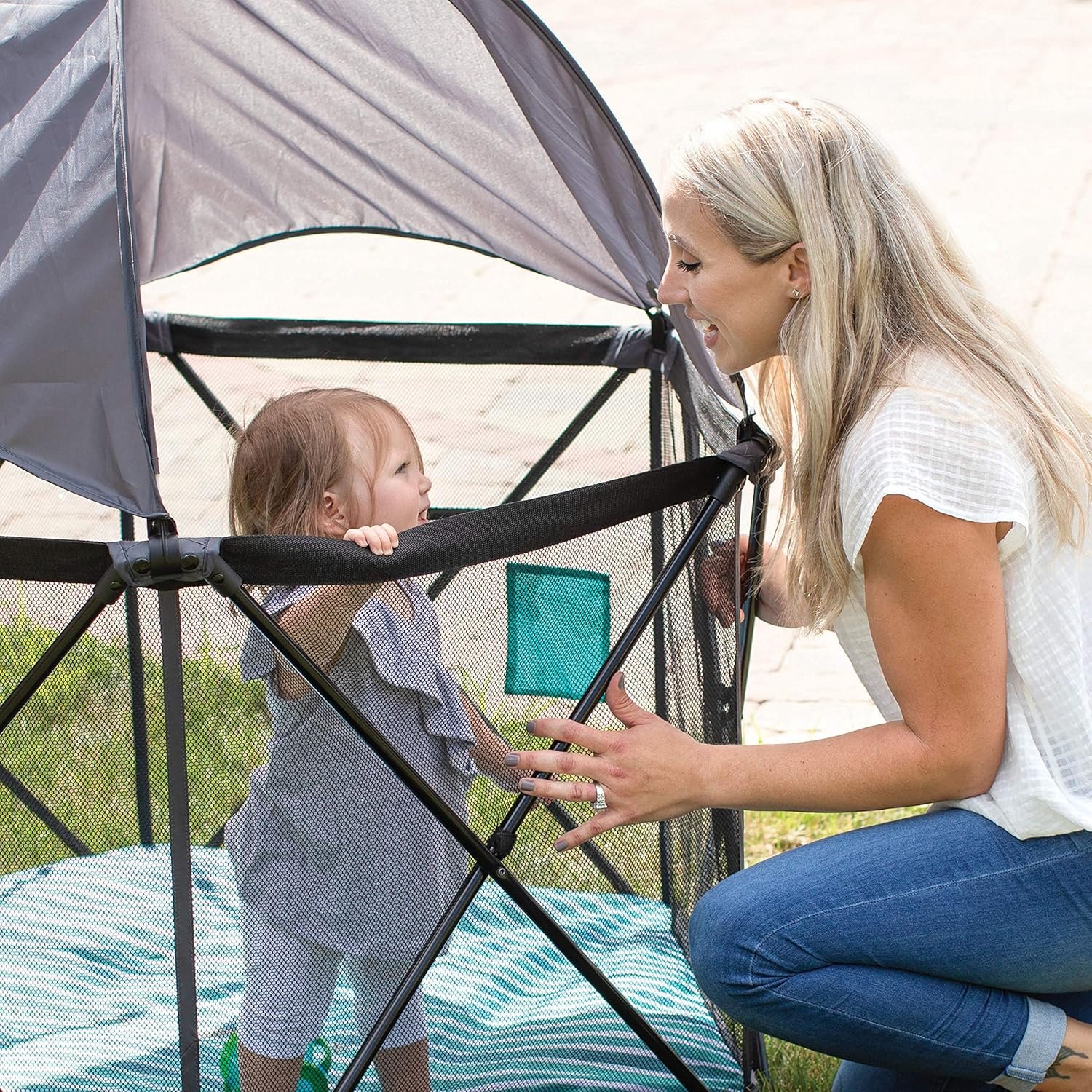 • Removable Canopy: The included sun canopy blocks 98% of UVA and UVB rays, transforming the playard into an instant shady oasis—perfect for sunny beach days or picnics in the park.