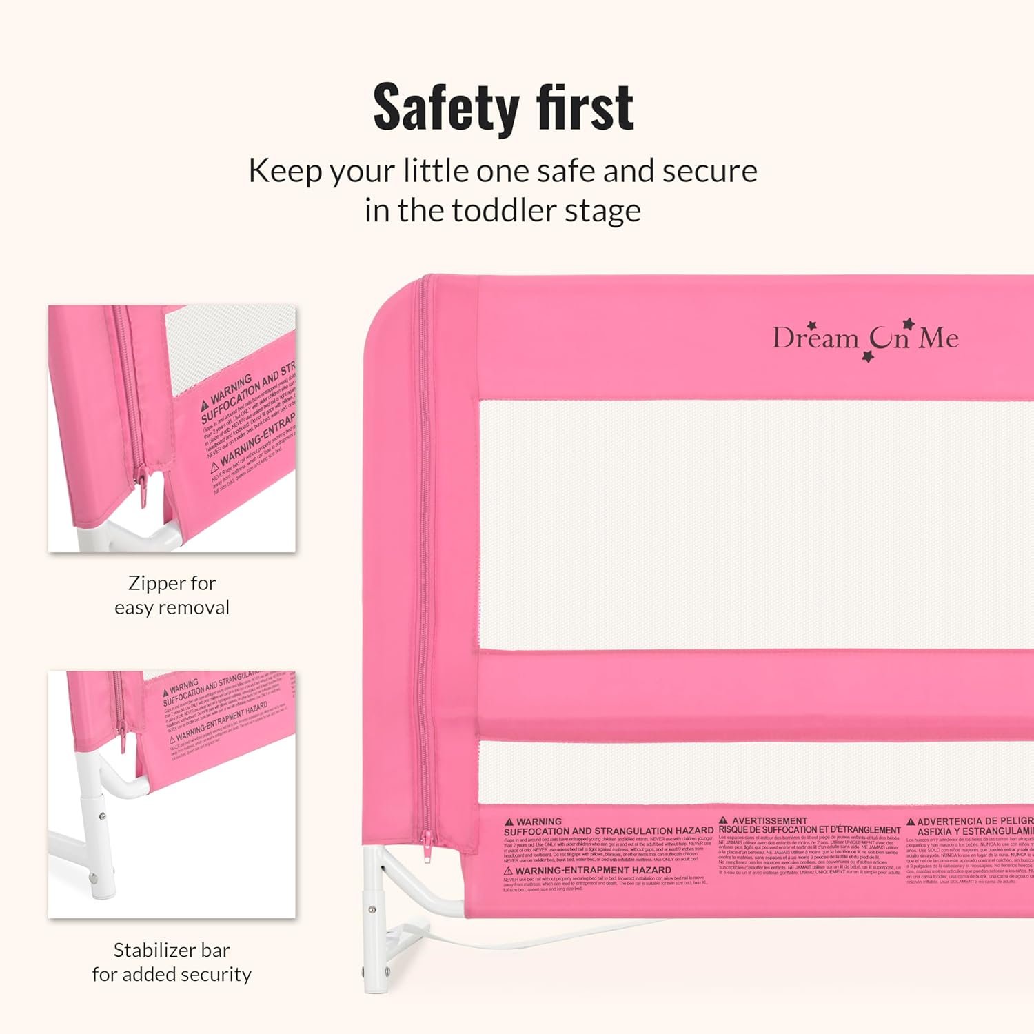 The Dream On Me toddler bedrail is more than just another child safety rail—it’s designed with key features to ensure comfort, adaptability, and ultimate protection:
