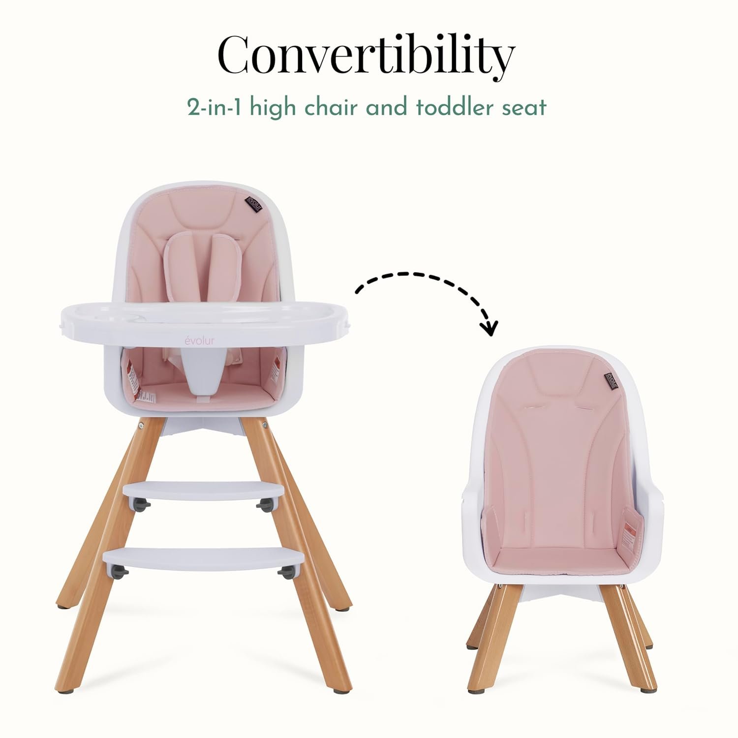 • Grows with Baby: This convertible high chair adapts from a baby feeding seat to a toddler chair. With the included conversion kit, the Evolur Zoodle seamlessly adjusts as your child gets bigger, supporting every mealtime stage.