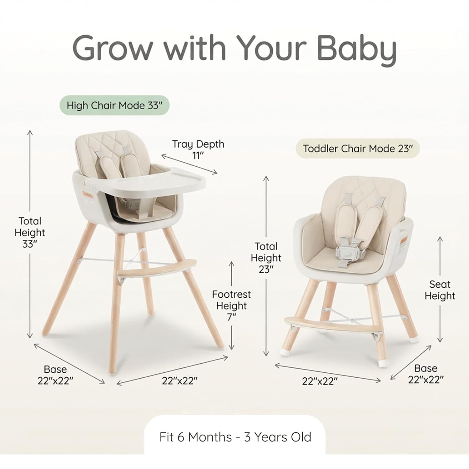 • Multi-functional highchair: Transforms from standard high chair to toddler chair and booster seat. Suits babies from 6 months up to 33 lbs, adapting to various mealtime scenarios.